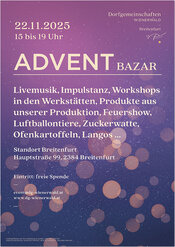 MIt Livemusik, Impulstanz, Workshops in den Werkstätten, Produkten aus unserer Produktion, Feuershow, Luftballontieren, Zuckerwatte, Ofenkartoffeln, Langos ...